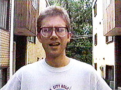 80. With drink in hand, Editor B leaps atop the steps of Myers Hall. (Note the "Meat Poetry" tee shirt featuring an image of Ed the Meat Poet.)